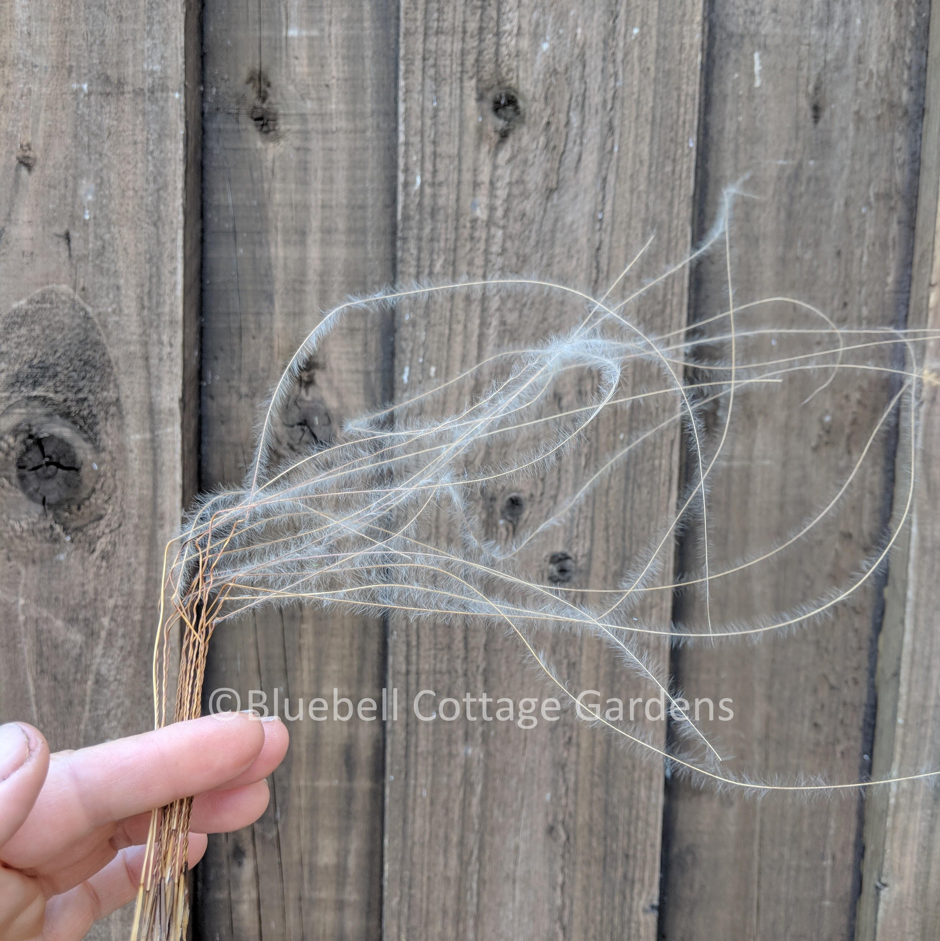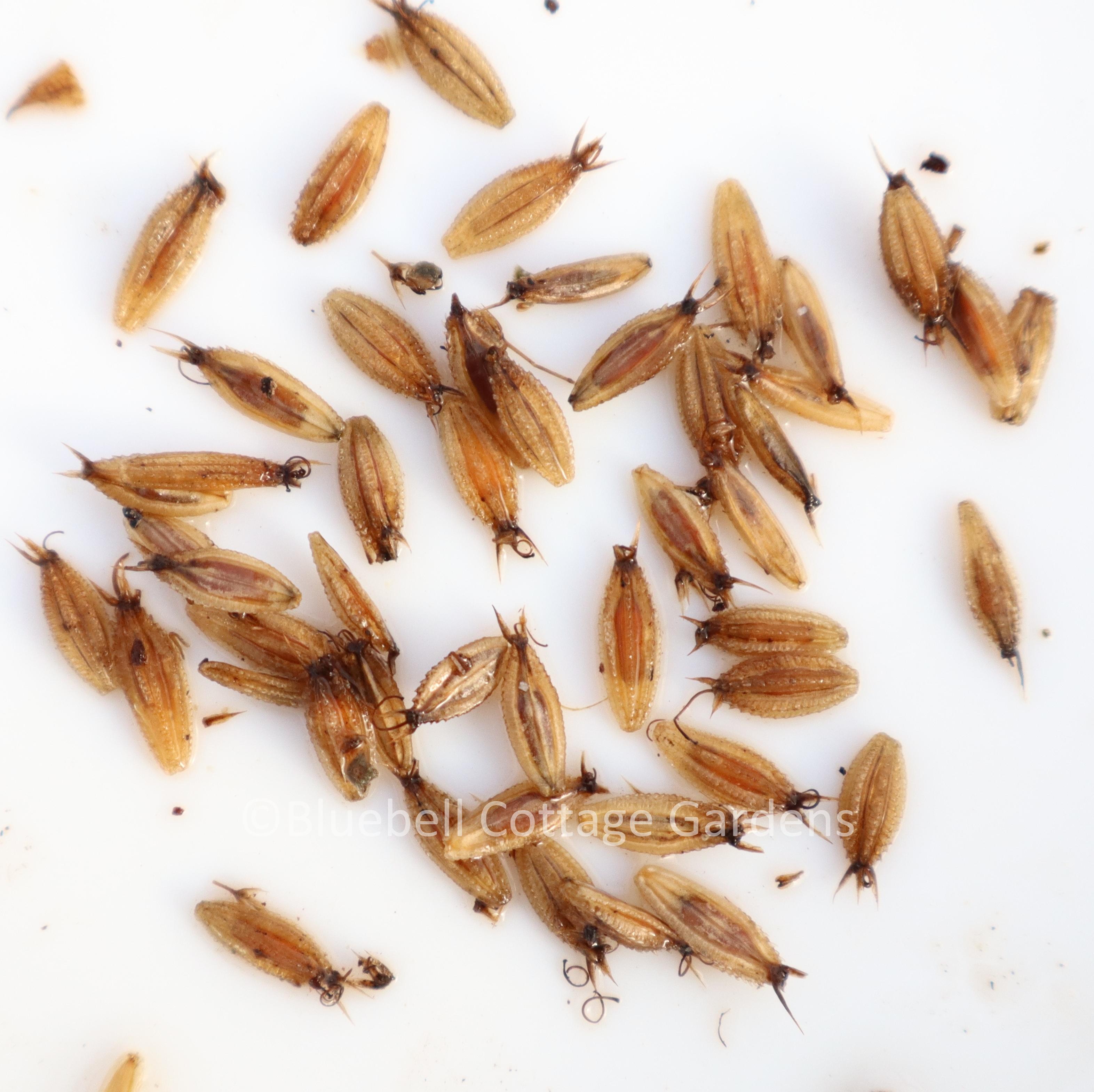 One of my favourite seeds is pictured right/above. It's from a low growing grass, Stipa tirsa, which has long feathery ‘awns’, perfect for flying away on the wind. These seeds have a second technique for success too. If you look closely at the photograph, you can see that the stiff section above the seed is twisted. When the seeds touch the ground, the awns twirl round, drilling the seed into the ground until it's at the right depth. Isn't that just wonderful?